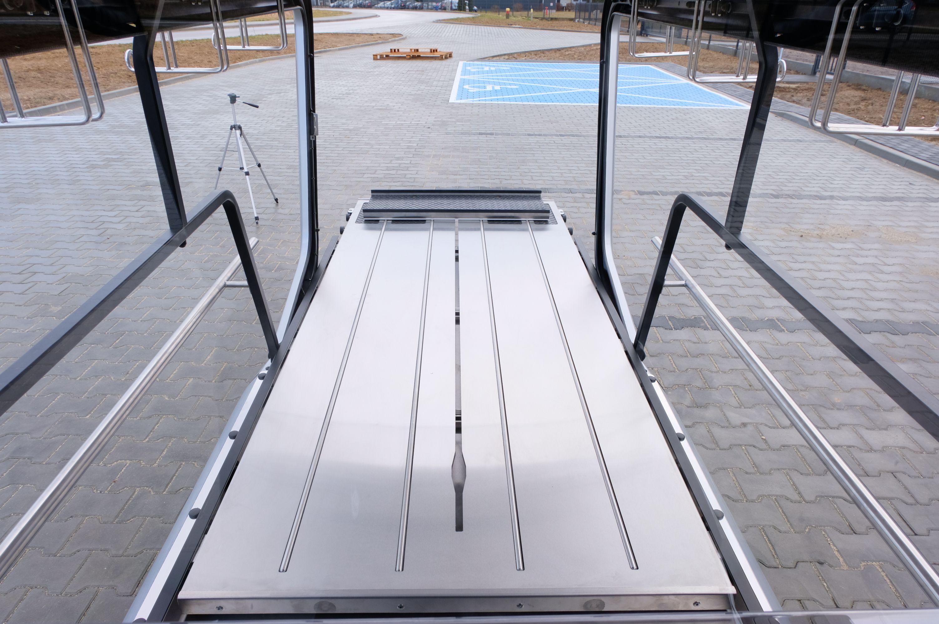- Seitenscheiben aus Plexiglas (entlang der Plattform, auf beiden Seiten)
